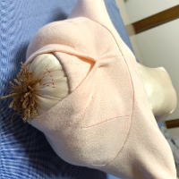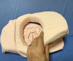 赤ちゃんの頭に張り付く様に伸縮性と構造に工夫を凝らしております。